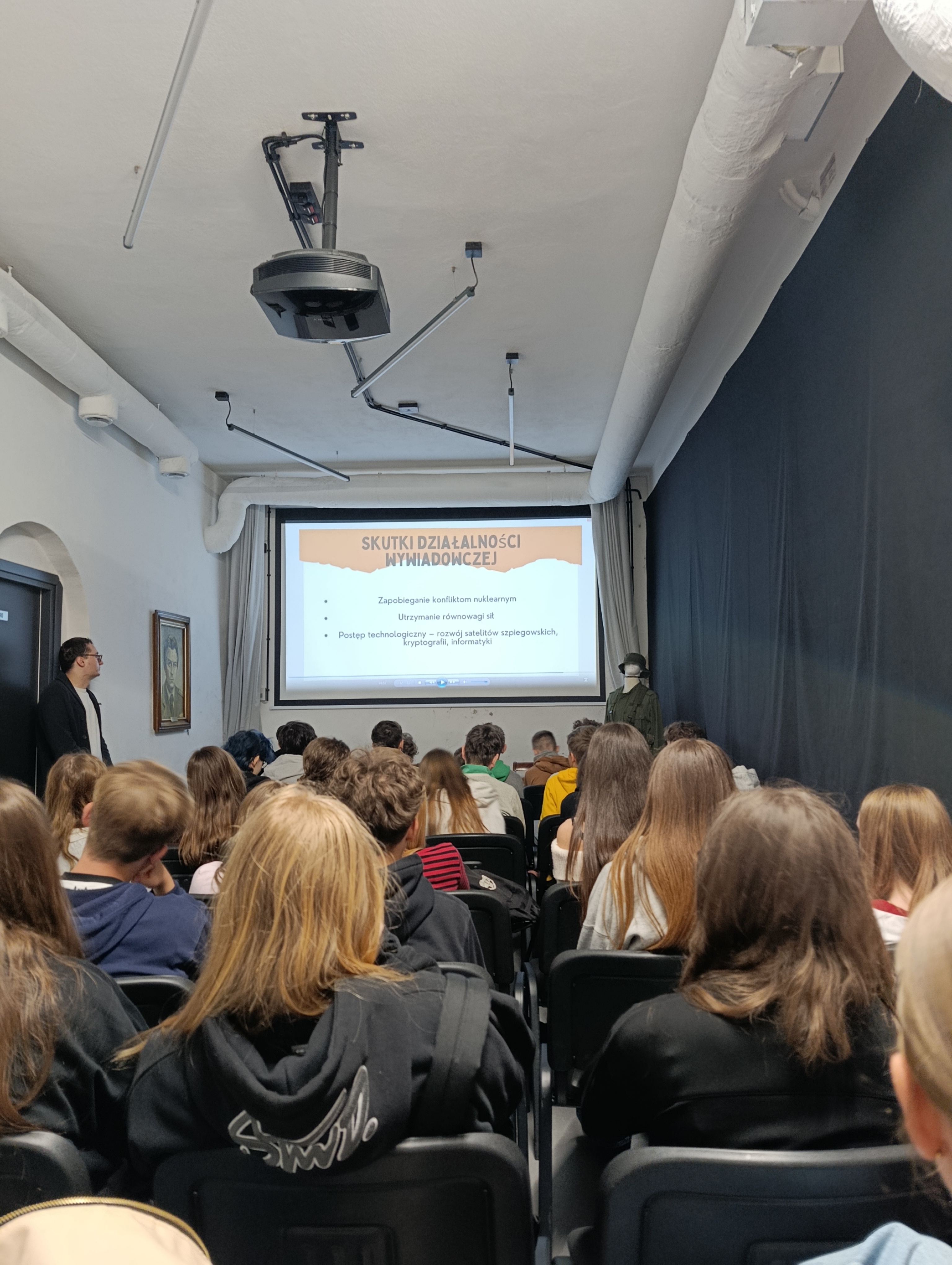 Dn. 28 kwietnia klasy 7A i 7B pojechały do Muzeum Zimnej Wojny znajdujące się w Warszawie na Starym Mieście. Wysłuchaliśmy ciekawej opowieści na temat przyczyn zimnej wojny miedzy USA a ZSRR. Następnie poszukiwaliśmy ukrytych zaszyfrowanych wiadomości, które musieliśmy odczytać wg klucza. Zwiedziliśmy wystawę i obejrzeliśmy film o znanym polski szpiegu. Najaktywniejsi otrzymali książki i czapki z logo muzeum.